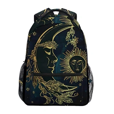 Black Sun Moon Bookbag School Student Backpack for Travel Teen Girls Boys Kid
