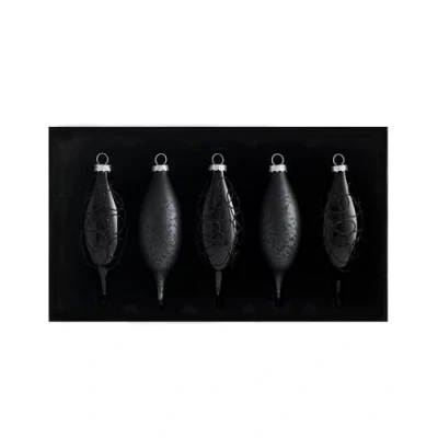 Black baubles to make your tree stand out this year 5 pack of teardrop baubles in matt and shiny finishes Different designs with glitter and mottled effects Height: 15 cm Diameter: 5 cm