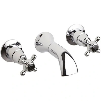 Black Topaz Wall Mounted Crosshead 3 Hole Basin Mixer Tap Chrome Hudson Reed