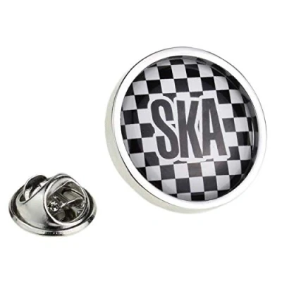 Black & White Chequer SKA Design Round Framed Lapel Pin Badge