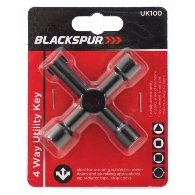 SPECIFICATIONThis 4 way utility key is ideal for use on gas/electric meter doors & plumbing applications eg: radiator taps,stop cocks etc.BARCODE 5017403 041368CARTON QTY 72/12 Pcs APPROX ITEM WEIGHT 66gPACKAGING Slide Blister