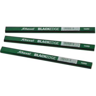 General description Blackedge Carpenters Pencils feature an oblong shape that can be sharpened to a chisel edge, which prevents the pencil from following the grain of the material. They are ideal for precise marking on various surfaces, including hardwoods, brickwork, and plastered walls. Technical specifications Color: Green (hard grade) Type: Pencil Pack Quantity: 12 pencils MPN: BLAG EAN: 5010255716903 Compatibility and accessories These pencils are suitable for marking on hardwoods, brickwork, plastered walls, and for general carpentry tasks. Installation No installation is required. Simply sharpen the pencil to the desired chisel edge for use. Usage Sharpen the pencil to a chisel-shaped edge for precise marking on hard surfaces like hardwoods, brickwork, and plastered walls. Available in three grades: green (hard) for hardwoods, red (medium) for general carpentry, and blue (soft) for softwoods and newly felled timber. Other information