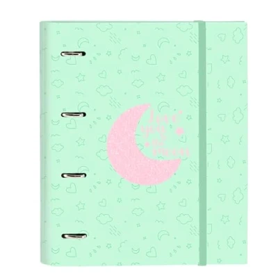 BLACKFIT8 Moon 4 Ring Binder 35 cm with 100 A4 Sheets, Ideal for Children of Different Ages, Comfortable and Versatile, Quality Resistance, 27 x 3.5 32 cm, Green, Estándar, Casual