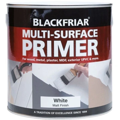 General description Blackfriar Multi-Surface Primer is specially formulated to prepare various surfaces for painting, ensuring better adhesion and durability. It is ideal for hard and soft woods, chipboard, plywood, GRP, MDF, exterior UPVC, ceramic tiles, iron, steel, galvanised and non-ferrous metals (such as aluminium, brass, chrome, copper), and old plaster. Technical specifications Size: 250ml Color: White Type: Multi-Surface Primer Coverage: approximately 12m² per liter per coat Touch Dry: 1 hour Hard Dry: 3 days Recoatable: after at least 4 hours Compatibility and accessories Compatible with various surfaces including wood, metal, plastic, and plaster Installation Apply the primer evenly over the surface using your preferred method (brush, roller, or pad) Ensure the surface is clean and dry before application Usage Allow the primer to dry: Touch dry in 1 hour, hard dry in 3 days Recoat after at least 4 hours for best results Other information
