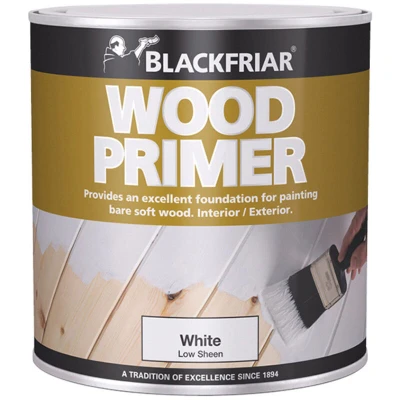 General description Blackfriar Wood Primer is designed to provide an excellent foundation for painted surfaces. Its special solvent-based formulation makes it easy to apply on both new and stripped surfaces, allowing for effortless overcoating. This primer is suitable for both soft and hard woods and can be used for interior and exterior applications. Technical specifications Colour: White Size: 1 litre Coverage: 14 m²/L/Coat Touch Dry: 2-4 hours Hard Dry: 3 days Recoatable: 16 hours Type: Wood Primer MPN: BF0370001D1 EAN: 5013296050142 Installation Application method: brush, roller, or spray Usage Blackfriar Wood Primer is ideal for preparing wood surfaces before painting, ensuring a smooth and durable finish. Other information