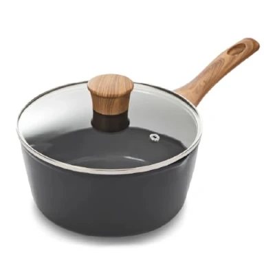 Blackmoor 20cm Saucepan with Tempered Glass Lid/Wood Effect Bakelite Handle/Non Stick Ceramic Coated Pan, PFAS Free, Suitable for All Hob Types/Sherwood Classic Range 65289