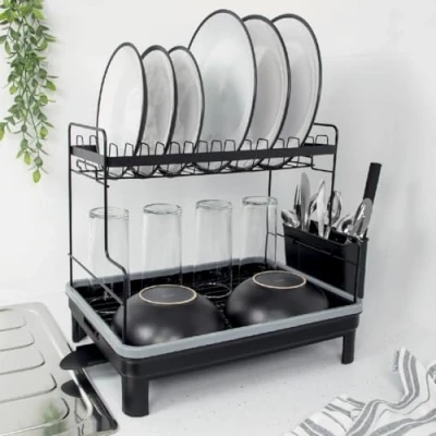 JoybuyThe Blackmoor 2-Tier Dish Drainer offers expanded drying space with dedicated sections for plates, bowls, cups, and utensils. Made from high-quality, rust-resistant metal with efficient drainage and a durable finish, it keeps your countertop organised, dry, and tidy while maximising kitchen space.