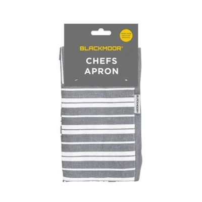 CHEF APRON – This comfortable and durable apron is a home kitchen essential, ideal to wear during everyday cooking and baking to protect your clothing and skin from food and liquids. MULTIFUNCTIONAL – In addition to cooking and baking, the apron can be worn while gardening, cleaning, barbecuing, crafting and more. It includes a spacious front pocket to hold items such as cutlery and cooking gadgets, recipe cards, stationary or your phone. STYLISH AND ADJUSTABLE – The apron comes in two stylish colours, grey or navy striped. It measures at 85 x 65cm and can be easily adjusted via neck strap to fit most sizes. EASY CARE - To keep your apron looking fresh after regular use, it’s good to know that it is machine washable. Check out the rest of the matching range on the Blackmoor store including a set of 5 tea towels, oven mittens and a double oven glove. BLACKMOOR - Blackmoor is the market leading provider of the very best kitchen essentials to inspire the everyday home cook. Find everything from pots and pans, to knife sets, bakeware essentials and cooking utensils all at the Blackmoor Amazon store page today!