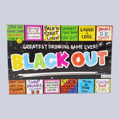 Grab your mates and roll the dice with the Blackout Drinking Game, where wild challenges and hilarious dares await! This game isn’t for the faint of heart; land on a space and follow the instructions to the letter! From embarrassing antics to rounds of laughter, it’s all about embracing the chaos and making unforgettable memories with friends. Some spaces offer wiggle room, so feel free to unleash your creativity or tweak the rules to keep everyone on their toes! Inside this party spectacular, players can expect a riot of fun with the Laugh or Lose cards, pitching you against others in side-splitting confrontations. Keep your composure while reading cards aloud, because if your opponent cracks a smile, they’re sipping on a drink, and if you laugh, you join them in the fun! There's also the Challenge of Truth or Drink, where honesty isn’t just the best policy—it’s the only policy. Answer truthfully or take a shot; no dodging allowed! Ideal for a crowd of daring adults looking to turn an ordinary night into an epic showdown, Blackout promises a night of uproarious fun unlike any other. Whether you finish the board or just enjoy the ride, the only rule is to revel in the madness. Get ready to laugh until you drop as you test friendships and push boundaries—just remember, this game is all about survival of the funniest!