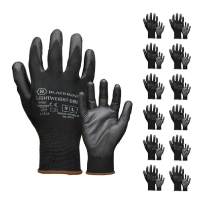 Blackrock 12 Pairs PU Work Gloves, Mens and Womens, Gardening, Painters, PPE, Warehouse, for Grip, Yard Litter Picking Size 10/XL