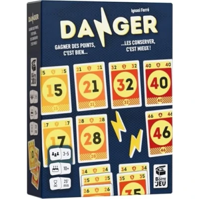 A TACTICAL AND FUN CARD GAME: Danger is a card game where the real challenge is not only to earn points, but to keep them until the end of the game. YOUR GOAL: With each turn, the highest card wins the fold, but beware: only the lowest value of each color will score points and the consecutive values (the continues) within the same color cancel each other -> will you manage to keep your points? ✨ ORIGINAL: After a first game, the point system will be understood by all. You will have to adapt your tactics to win just the cards you need by avoiding those that would lower your score. ⚡FAST AND MALINY: One game lasts about 20-25 minutes. When we lose, we take pleasure in trying to prevent our opponents from scoring points by making them win a card that does not always suit them... Ideal for family or friends: The game is played from 3 to 5 players (with a variant for 2 players) and is recommended for players aged 10 and over., Manufacturer: La Boite de jeu