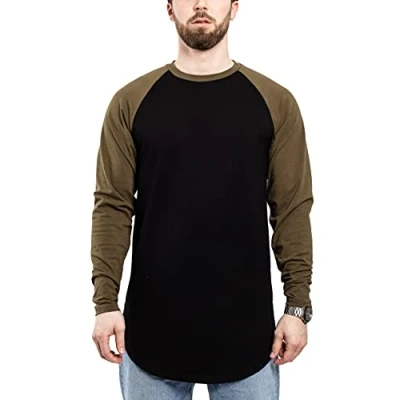 Blackskies Baseball Longsleeve T Shirt Long Oversize Fashion Basic Sleeve Raglan Men's Tee Melliert Black Olive Medium M
