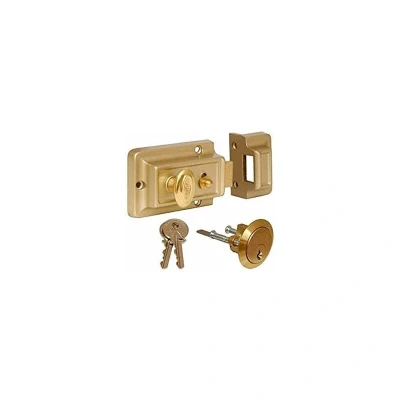 General description This Night Latch Door Lock with a polished brass finish is designed to enhance security for various types of doors, including front doors, gates, and sheds. It features a standard backset and is manufactured for durability, ensuring long-lasting service. This lock is ideal for residential and apartment doors, providing peace of mind for you and your family. Technical specifications Finish: Polished brass Backset: Standard Dimensions: 60mm (approx) Installation Surface mounted for straightforward installation Requires only basic tools Comes with all necessary fixings Usage External locking with a key Internal locking with a button Suitable for various applications: gate latch, door latch, shed locks, garage door locks Other information Includes a complete set: rim cylinder, lock case, three keys, and trim ring