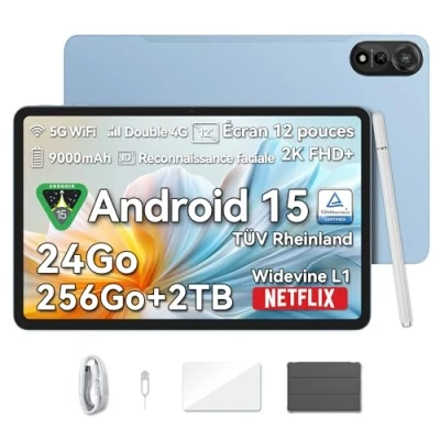 Tablet Android 15+T615 Octa Core: With Android 15 and the T615 Octa-Core processor, this tablet offers fast and smooth work. It handles multitasking and demanding applications effortlessly, and provides optimized performance and data protection. The T615 processor guarantees excellent performance for work and entertainment. Tablet 12 inch + 2K FHD large display: the 12 inch tablet from Blackview has a 2K FHD display that delivers clear and detailed images. Whether watching videos, browsing the web or editing documents, the large display provides an impressive visual experience. The generous screen size boosts productivity and entertainment value, so you can multitask efficiently and enjoy high-resolution content. 24 GB (8 GB RAM + 16 GB extension) RAM + 256 GB ROM + 2 TB TF: the Blackview MEGA2 offers 24 GB RAM (8 GB + 16 GB extension) and 256 GB ROM, expandable to up to 2 TB via TF card. With this enormous storage capacity, you can easily multitask, store large files and take advantage of demanding applications. Whether you're entertaining, work or creative projects, you'll always have plenty of room to manage your content and use the tablet efficiently. 4G LTE + 5G WiFi + BT 2.0 + 9000 mAh battery + 18 W: The Blackview MEGA2 offers 4G LTE, 5G WiFi and Bluetooth 5.0 for super fast and stable connections. The powerful 9000 mAh battery guarantees a long service life, while the 18 W fast charging ensures rapid charging. Whether for work or entertainment, you always stay connected quickly and can use your tablet all day long without interruption. 8 mm and 615 g + dual camera 8MP + 13MP + stereo double speaker: the Blackview MEGA2 impresses with a slim design of only 8 mm thick and a light weight of 615 g, making it ideal for on the go. The dual camera with 8MP (front) and 13MP (rear) ensures clear photos and videos, while the stereo dual speakers deliver powerful, clear sound. Perfect for creative shots and a captivating multimedia experience no matter where you are.
