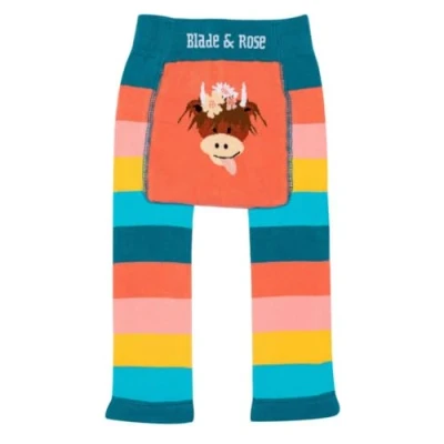 Blade & Rose Bonnie The Highland Cow Leggings Unisex Clothing for Babies Toddlers 3 4 Years Orange/Blue/Yellow/Pink
