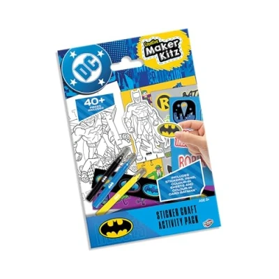 UNLEASH CREATIVITY - This DC Batman Sticker Craft Activity Set comes with 40+ pieces including stickers and colour-in card Batman figures, making it perfect for hours of creative fun! IDEAL FOR ON-THE-GO FUN - Compact and easy to carry, this set is perfect for keeping young fans entertained anywhere. With sticker sheets, strips, and small colouring pages, it fits easily into any bag, making it an ideal sticker pack for travel. PERFECT FOR PARTY BAGS - Ideal for party bags, these vibrant and fun sets make fantastic gifts. With stickers, colouring and pens included, they are perfect for all young superhero fans! OFFICIALLY LICENSED DC - An authentic DC product, this set includes a card Batman for interactive play bringing Gotham City to life! EACH SET INCLUDES: 12 x Batman Sticker Craft Activity Set