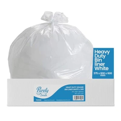 TIRED OF CHEAP LINERS THAT RIP AND LEAK?: The Blake & White PS3032 Purely Smile Standard Clear Bin Liners offer reliable performance for Heavy duty waste, Measuring 375 x 600 x 600 mm, these liners are designed to fit perfectly in desk bins in office or home environments, Say no to frustration of flimsy bags NEED A LONG-LASTING SUPPLY?: Each case contains 500 liners, ensuring a substantial supply at a good price, Reduce the frequency of reordering and keep your waste management running smoothly with this bulk pack WHAT CAN YOU DISPOSE OF WITH THESE BAGS?: These light-duty bin liners are best for paper, tissues, and general office waste, They are not designed for sharp objects or heavy loads but work perfectly for keeping spaces tidy, Ideal for restrooms, break rooms, and personal workspaces WASTE SOLUTION: Made from recyclable plastic, these bin liners are a responsible choice for everyday waste disposal, They help manage trash efficiently while supporting sustainability efforts, By choosing recyclable liners, you contribute to reducing environmental impact without compromising convenience and cleanliness WHY CHOOSE THESE OVER REGULAR BIN LINERS?: Designed for affordability and efficiency, these liners offer a cost-effective solution for businesses and homes, Their lightweight material is easy to handle, making them perfect for high-usage areas, A reliable solution at a great price OUR STORY: Blake & White has a rich history that spans over four decades, beginning as a janitorial supply company and evolving into a respected leader in the cleaning and healthcare industry, We prioritize ethical sourcing and sustainability, empowering everyone to lead cleaner, healthier lives with accessible cleaning and healthcare products for businesses and individuals alike