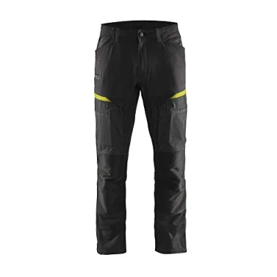 Blaklader 145618459933D124 Service Work Trousers with Stretch, Black/Yellow, Size D124