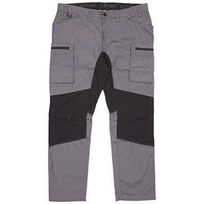 Fabric: 65% polyester, 35% cotton, finely woven, 166 g/m2 Functionality: stretch inserts in the crotch, the knees and on the seat. Especially ergonomically shaped trouser legs. Plastic zip in crotch D-ring on waistband Back pockets, leg pockets with bellow, zip, pen and knife pocket, side pockets, mobile phone pocket inside. Extension on leg hem