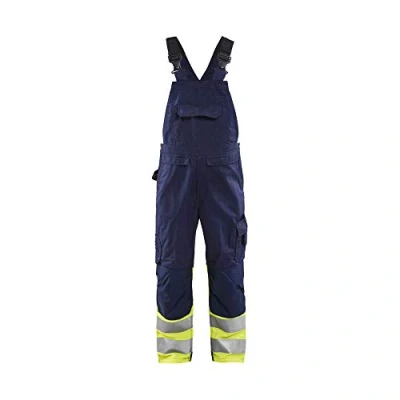Blaklader 266218008933C44 High Vis Dungarees, Navy/Yellow, Size C44