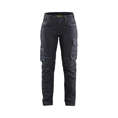 Tough, durable ladies service trousers with manufacturer lifetime seam guarantee and at least 4 times stronger than a normal denim trouser. Fine Swedish design, check size guide image and size slightly up if in any doubt 55% cotton, 30% polyester, 15% polyamide, denim, coated, CORDURA Denim stretch, 340 g/m² 2-way stretch. Scratch free Hidden buttons. Elastic at waistline Inner knee pad pockets. Leg pocket with bellow, pen pocket and inside phone pocket in mesh, Leg pocket with pen- and knife pocket. Inner ruler pocket
