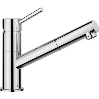 Made of shiny chrome, the single-lever mixer tap blends harmoniously into the kitchen, ideally suitable for small sinks Extended working radius for more flexibility: Kitchen tap with a 120-degree swivel with extendable spout for easy filling of heavy pots with pans High-quality in every detail: Sturdy single-lever mixer tap with patented aerator for less limescale build-up, equipped with backflow preventer as standard Extended service life: The ceramic seal of the cartridge is not only wear-resistant, but also ensures easy valve opening/closing Easy installation: Flexible connection hoses with 350 mm length with 3/8-inch nut; Tap hole of 35 mm diameter required; Firm stand in stainless steel sinks due to its stabilising plate, Manufacturer: BLANCO