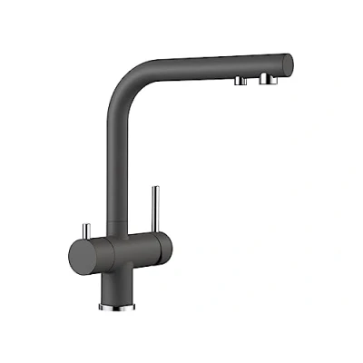 Space-saving and practical solution: thanks to the spout with dual function, there is no need to cut a separate hole for the spout with treated water. Integrated spout for both water inlets with a special flow regulator. Movable spout. A hole for the tap with a diameter of 35 mm is required. Ceramic head. Flexible connection hoses with a length of 450 mm and a 3/8" nut enable quick and safe installation. The patented jet regulator reduces limescale build-up on the faucet head. The stiffening plate increases the stability of the taps mounted with steel sinks. Total height of the tap: 300 mm. Height to the end of the spout: 267 mm. Range of the spout: 205 mm. Rotation of the spout: 360°., Weight: 4.4753839186 pounds, Manufacturer: Blanco