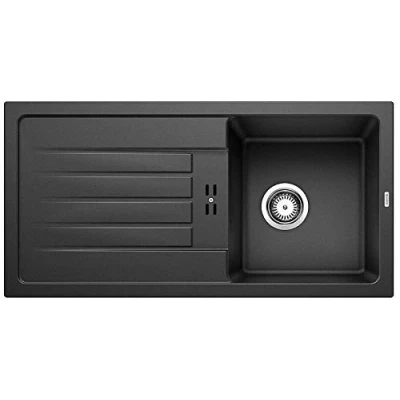 The entry-level model for modern requirements: the coloured SILGRANIT sink in anthracite impresses in everyday use due to its resistant material and attractive design Perfect use of space: Large basin and ample draining surface with a harmoniously integrated overflow for comfortable working – narrow basin radii for maximum filling volume and low worktop requirements Granite sink made of SILGRANIT: The patented composite material made of up to 80% quartz is a high-quality artificial stone – easy-care, scratch-resistant, durable and heat-resistant Assembly instructions: The bowl is reversible and can be installed to the left or right of the draining board – with pre-drilled holes for the mixer tap Scope of delivery: Drain set with a space-saving pipe – 3 ½'' basket valve, without drain remote control – available in other SILGRANIT colour variants – can be coordinated with coloured SILGRANIT mixer taps, Weight: 28.880556322 pounds, Manufacturer: Blanco