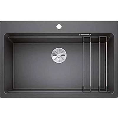 Innovative, multi-level, anthracite-coloured sink basin: The tiered concept enables working on three levels at the same time and provides a lot of functionality in a small space Versatile in daily usage: The rails can be used to dry dishes, hang up a sieve or place hot pots and pans while blanching vegetables or soaking dishes on a level lower Granite sink made of SILGRANIT: The patented composite material of up to 80% quartz sand is a high-quality synthetic stone – easy-care, scratch-resistant, durable and heat-resistant Built-in sink with continuous tap ledge: Plenty of space for the mixer tap and the drain switch remote control – suitable for 80 cm wide base units Scope of delivery: 2 x ETAGON stainless steel rails – drain set with space-saving pipe – 3 ½'' InFino️ strainer valve with a convenient drain remote control with a practical rotary switch, Weight: 30.9198322455 pounds, Manufacturer: Blanco