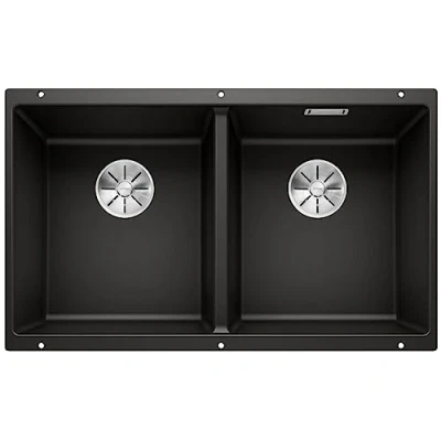 Two basins, one cut-out: the black undermount sink for 80 cm-wide base cabinets requires only a single assembly despite double bowls High-quality features: built-in sink with C-overflow and even BLANCO InFino. Drain system - without edges, edges or joints, for easy cleaning Granite sink made of Silgranit: the patented composite material made of up to 80 percent quartz is a high-quality artificial stone - easy to clean, scratch-resistant, durable and heat-resistant Use the full potential of the kitchen sink: with the matching accessories such as the top rails, many work steps can be combined on the sink - from food preparation to washing up Box contents: drain fitting with space-saving pipe and drain connection - 2 x 3 ½ inch InFino basket valve and mounting kit - professional and exact installation required - only suitable for dense, continuous worktops, Weight: 29.84618102956 Pounds, Manufacturer: BLANCO