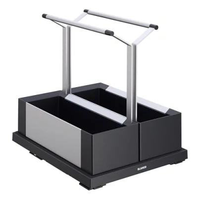 Caddy provides storage space for cleaning bottles and supplies at the bottom of the cabinet. The portable caddy can be easily removed and placed back on the sliding base plate. Easy access thanks to the handle and the fully extendable sliding function. Design in dark grey and aluminium suitable for all BLANCO cabinet organisation elements. Easy to clean thanks to generous and smooth surfaces. Available as a portable single or double caddy. The joy of having a tidy sink cabinet in your kitchen Box contents: organiser system for floor mounting behind swing doors, 2 x portable caddy, base plate with soft retraction, Weight: 2.20462262 pounds, Manufacturer: BLANCO