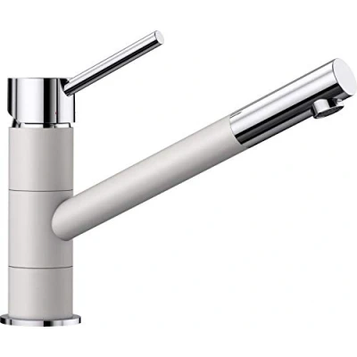 The single-lever mixer tap in white is an impressive modern SILGRANIT colour version – thanks to its low, slender shape it is also ideal for small sinks High quality in all components: Kitchen mixer tap with patented jet regulator for significantly less limescale For even longer service lifespan: the ceramic cartridge seal is not only low-wear but also ensures easy opening and closing of the valves Easy installation: Flexible connection hoses with 350 mm length and 3/8" nuts – tap hole with 35 mm diameter required – firm stand in stainless steel sinks due to stabilising disc, Manufacturer: BLANCO