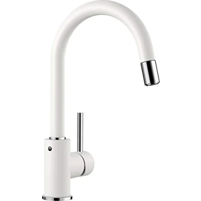 Attention to detail: The elegant single lever tap in SILGRANIT white features a high, curved spout – suitable for colour matching with coloured SILGRANIT sinks Increased flexibility: The freedom of movement of the 360° swivel range is supplemented by a pull-out spout – allows for easier working in and around the basin For your health: All processed parts are LGA certified and completely free of harmful substances Long product lifetime: The BLANCO cartridge with ceramic seal is more resistant than conventional seals and ensures easy and precise adjustment of the water flow rate and temperature Easy installation: Flexible connection hoses with 350 mm length and 3/8" nuts – tap hole with 35 mm diameter required – firm support in stainless steel sinks through stabilisation disc Included components: Flexible connection hoses with 350 mm length and 3/8" nuts, stabilisation disc, Weight: 4.0565056208 Pounds, Manufacturer: Blanco