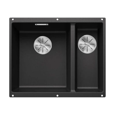 Two basins, one cut-out: The anthracite-coloured undermount sink for 60 cm wide base units requires only one installation despite double bowls – the main bowl is on the left-hand side High-quality features: Fitted sink with C-overflow ️ and an even level BLANCO InFino ️ drain system – without edges, rims or seams for easy cleaning Granite sink made of SILGRANIT: The patented composite material of up to 80% quartz sand is a high-quality synthetic stone – easy-care, scratch-resistant, durable and heat-resistant Using the full potential of the kitchen sink: With the matching accessories such as the top rails, many work steps can be combined at the sink – from food preparation to washing up Scope of delivery: drain set with space-saving pipe and drainage connection – 2 x 3 ½'' InFino ️ basket strainer and mounting set – professional installation required – only suitable for sealed, seamless worktops, Weight: 23.14853751 Pounds, Manufacturer: Blanco