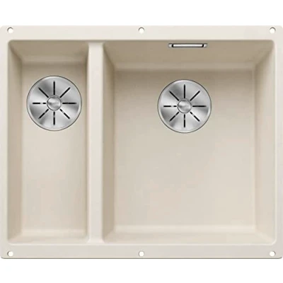 Two basins, one cut-out: the anthracite-coloured under-unit sink for 60 cm wide base cabinets requires only one single assembly despite the double sink - with main basin on the right side High-quality features: built-in sink with C-overflow overflow and even BLANCO InFino drain system - no edges, edges or joints, for easy cleaning Granite sink made of Silgranit: the patented composite material made of up to 80 percent quartz is a high-quality artificial stone – easy to clean, scratch-resistant, durable and heat-resistant Use the whole potential of the kitchen sink: with the matching accessories such as the top rails, many work steps can be combined on the sink – from food preparation to washing up Box contents: waste fitting with space-saving pipe and drain connection - 2 x 3 ½ inch InFino basket valve and mounting kit - professional and exact installation required - only suitable for dense, continuous worktops, Weight: 21.81915007014 Pounds, Manufacturer: BLANCO