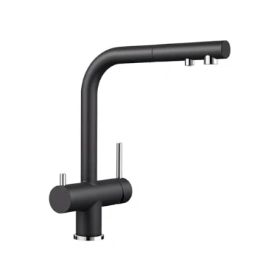 Surface finish Harmoniously coages with sinks and chambers. Required battery hole Ø 35 mm. Head with ceramic gaskets. Snake coated with nylon. Pulled out a spout with a separate spout for filtered and mixed water (cold / warm). Flexible connection hoses with a length of 650 mm with a 3/8 'nut ensure easy and secure assembly. Patented stream regulator significantly reduces stone deposition. The stabilizing plate increases the stability of the battery when mounted in stainless steel sinks. Normally equipped with a check valve that protects against water reversing. Total height of the tap: 306 mm. Height until the end of the spout: 272 mm. Range of the spout: 216 mm. Rotation of the spout: 180°., Weight: 4.850169764 pounds, Manufacturer: Blanco