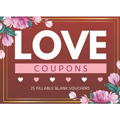 Blank Love Coupons: 25 Fillable DIY Vouchers Book for Him or Her, Husband, Wife, Boyfriend, Girlfriend Couples. Unique Romantic Valentines Day, Anniversary, Engagement, Birthday Christmas Gift.
