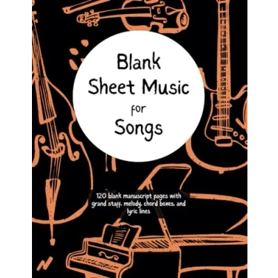 blank Sheet Music for Songs: 120 manuscript pages with grand staff, melody, chord boxes and lyric lines