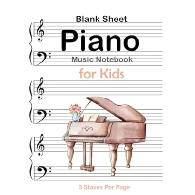 Blank Sheet Piano Music Notebook for kids 3 Staves Per Page: Manuscript Paper : large print perfect practicing note writing 120 pages 8.5x11"