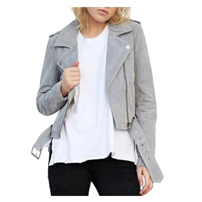 [BLANKNYC] Women's Jackets, & Luxury Clothing Cropped Suede Leather Motorcycle Jackets Comfortable Stylish Coats, Cloud Grey, M UK