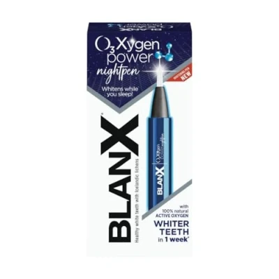 The new whitening treatment that works while you sleep, BlanX Nightpen releases 100% natural molecular active oxygen which performs a whitening action with oxidation of tooth stains Arctic lichens are a natural active ingredient that fights plaque and naturally whitens teeth Brush and dry your teeth, click the pen and apply a thin layer of gel on each tooth, in a few seconds a transparent film will form on the tooth surface and it will work all night long When you wake up, brush your teeth and enjoy your brighter smile! Use nightly for 7 consecutive days Gentle formula on enamel and gums, use daily for whiter teeth in 1 week*