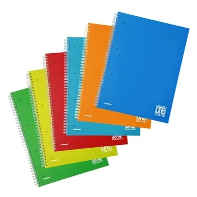 A4+ Format: The maxi spiral bound notebook with plastic cover One Color has a convenient A4+ format that makes it convenient to take and use anywhere, both at school and in the office. SUITABLE FOR ALL OCCASIONS Thanks to its versatility, this maxi spiral bound notebook with plastic cover is suitable for a variety of occasions, from everyday school use to the professional demands of the office. PACK OF 6 - The maxi spiral bound notebooks One Color are available in packs of 6, ideal for adequate supply for long term use. Lining: 4 mm ASSORTED COLORS: It comes in a variety of assorted colours, so you can choose the one that best suits your taste or the environment in which it is used.