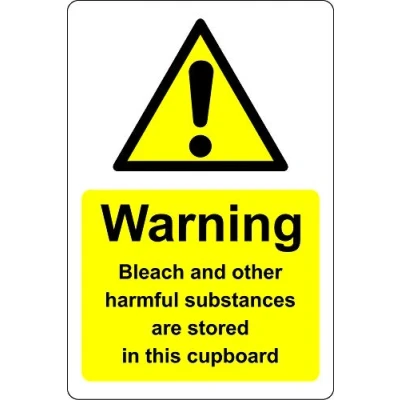 Bleach and other harmful substances are stored in this cupboard coshh Safety sign Self adhesive sticker 300mm x 200mm