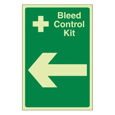 Bleedsave Bleed Control Kit Arrow Left 200 x 300 mm Glow In The Dark Self Adhesive Vinyl Safety Sign