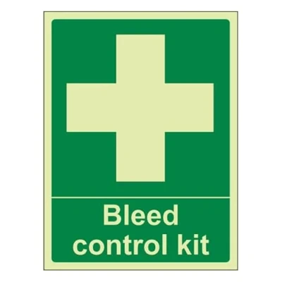 Bleedsave Bleed Control Kit Portrait 150 x 200 mm Glow In The Dark Self Adhesive Vinyl Safety Sign