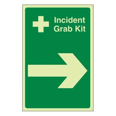 Bleedsave Incident Grab Kit Arrow Right 200 x 300 mm Glow In The Dark 1mm Rigid Plastic Safety Sign