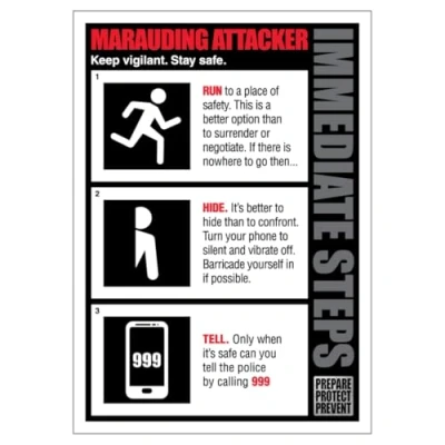 BLEEDSAVE Marauding Attacker Action Card 148 x 210 mm (A5) 1mm Rigid Plastic Safety Sign