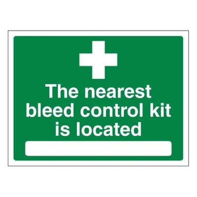 Enables fast and effective location of your bleed control kit in the event of an emergency. The HSE guidance on The Health and Safety (First-Aid) Regulations 1981 states that employers must ensure that first-aid equipment and facilities are suitably marked and easily accessible Provides clear information to employees and visitors. Ensures emergency bleed control kits can be located swiftly and life-saving treatment can be given as soon as possible Ideal for use in public premises and event venues. Complies with the Health and Safety (Safety Signs and Signals) Regulations 1996 Conforms to EN ISO 7010. Bold, high-quality print signage, delivers a clear and crisp message using durable UV-stabilised inks