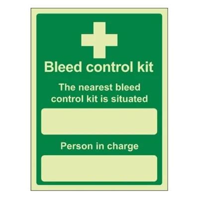 Bleedsave The Nearest Bleed Control Kit Is Situated Portrait 200 x 300 mm Glow In Dark Self Adhesive Vinyl Safety Sign