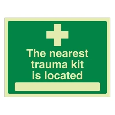 Bleedsave The Nearest Trauma Kit is Located 200 x 150 mm Glow In Dark Self Adhesive Vinyl Safety Sign